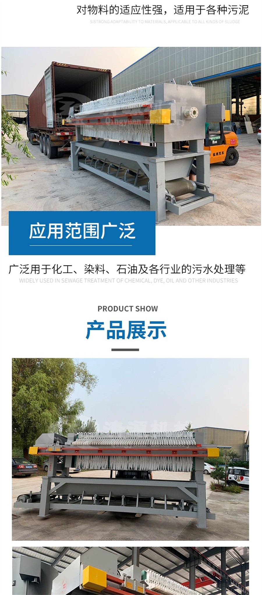 此外,我公司不僅生產(chǎn)板框式壓濾機(jī),還生產(chǎn)陶瓷過(guò)濾機(jī)、氣浮機(jī)、污泥壓濾機(jī)、刮吸泥機(jī)、造紙?jiān)O(shè)備等其他環(huán)保設(shè)備。