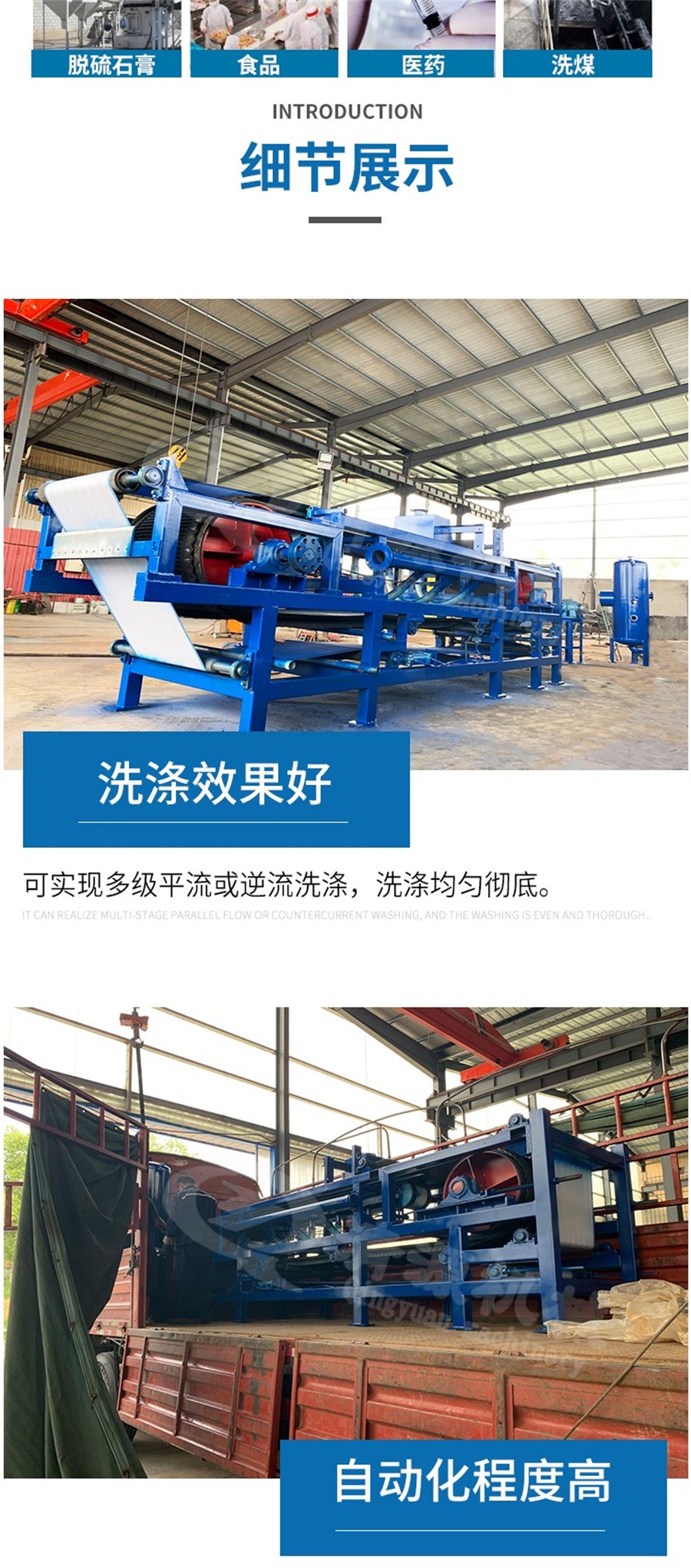 3: 濾工藝方便; 濾餅厚度. 洗水量. 逆流洗滌級數(shù). 真 空度. 濾布速度任意調(diào)整,以達到更佳過濾效果。 4 : 洗滌效果好; 可實現(xiàn)多級平流或逆流洗滌,洗滌均勻徹底,母液和洗滌液根據(jù) 工藝需要可分開收集和再利用。