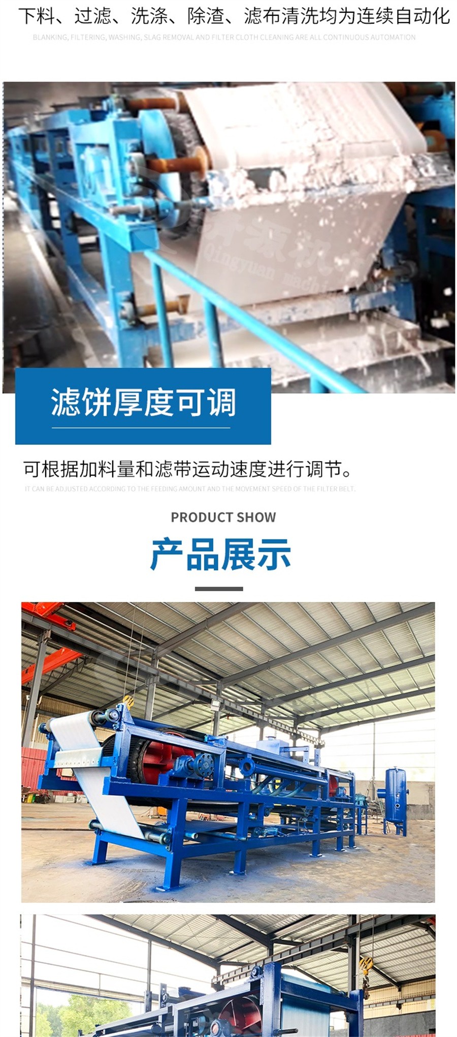 二、真空帶式過濾機特點:1: 自動化程度高;下料. 過濾. 洗滌. 脫渣. 濾布清洗均為連續(xù)自動化,提高生產(chǎn) 效率降低運行成本,極大減輕工人勞動強度,改善工作環(huán)境。