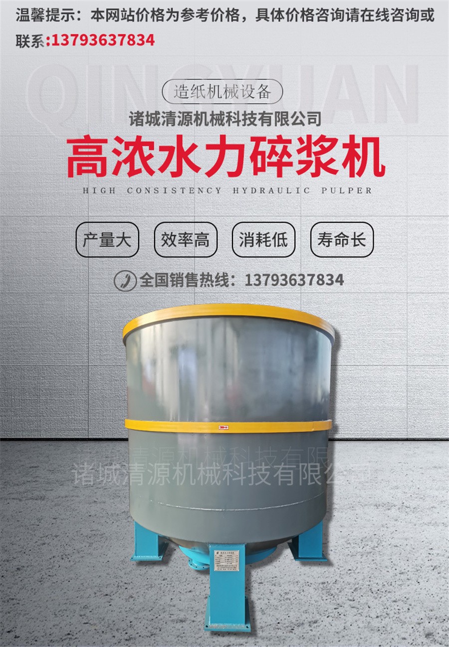 立式水力碎漿機:主要結(jié)構(gòu)有槽體、轉(zhuǎn)子(葉輪)、底環(huán)和電機等。一般轉(zhuǎn)盤的圓周速度為1000m/min,槽體直徑為1-6m。我國目前水力碎漿機的容積有1-30立方等多種型號。